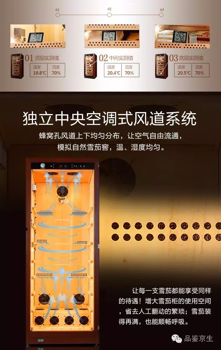 雪茄的存放需要温度均匀,因此推荐风冷的柜子。