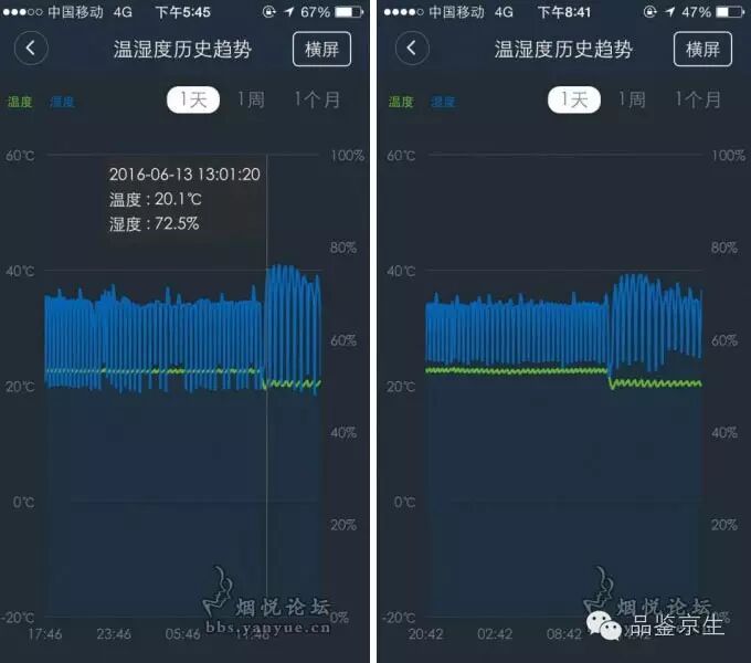 实际情况呢?我给朋友推荐了一个可以远程监控、记录温湿度的智能家居,他给自己的布尔道格雪茄柜装了一个,于是有了下图。