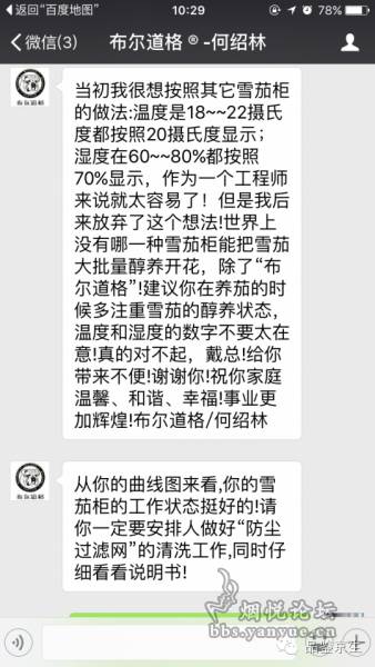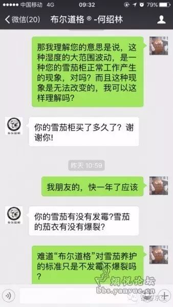 只能用惨不忍睹来形容。温湿度异常频繁、大幅的变化对雪茄来讲是一个灾难性的打击。鉴于布狗“良好的售后服务”,我在第一时间联系了某经常出席国内各大雪茄活动;经常向人讲授“雪茄养护”知识的“雪茄养护专家”;布尔道格雪茄柜创始人何绍林先生。